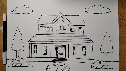 Cara menggambar rumah tingkat dua, ayo kita buat gambar rumah dua tingkat.